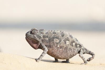 Namibia, Swakopmund. Namaqua chameleon walking on the sand.