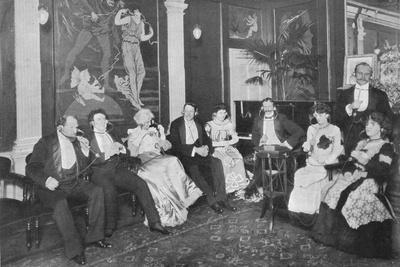 In the Electrophone Salon, Gerrard Street, London, c1903 (1903). The Electrophone system operated in the United Kingdom between 1895 and 1926, as a subscription to live theatre shows and church sermons. The user asked the telephone operator to connect them to the Electrophone line to receive broadcasts. Live opera was broadcast from the Royal Opera House, Covent Garden. From Living London, Vol. III, by George R. Sims. [Cassell and Company, Limited, London, Paris, New York & Melbourne, 1903]