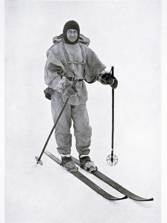 Captain Scott, British polar explorer, in the Antarctic, 1911. Scott (1868-1912) on skis during the 'Terra Nova' expedition (1910-1913) to the South Pole. Scott and four companions reached the Pole on 17 January 1912, only to find that the Norwegian expedition under Amundsen had beaten them to their objective by a month. Delayed on their return by blizzards and running out of supplies, Scott and his team died at the end of March. Their bodies and diaries were found eight months later.