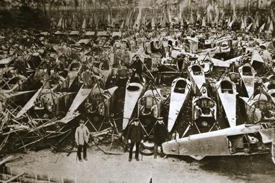German war materiel destroyed under the terms of the Armistice, c1918-c1919(?). Under the terms of the Armistice ending the First World War, the German military was compelled to surrender 5000 cannon, 30,000 machine guns, 3000 trench mortars and 2000 aircraft. The German High Seas Fleet was also interned.