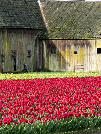 USA, Washington State, Skagit Valley. Tulip field and barn