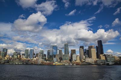 Seattle, Washington State. Skyline and waterfront with a ferry boat
