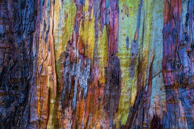 Detail of colorful trunk of a wet Eucalyptus tree, Oakland, Alameda County, California, USA