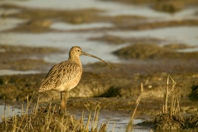 Palo Alto Baylands Nature Preserve, California, USA. Long-billed curlew walking in a tidal mudflat.