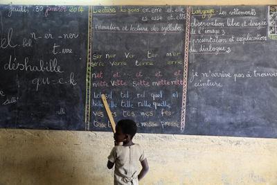 Pupil at the blackboard, primary school, Lome, Togo