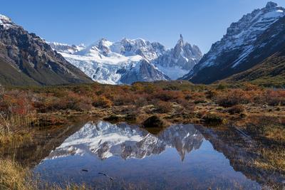 Autumn colours in Los Glaciares National Park, with reflections of Cerro Torro, Argentina