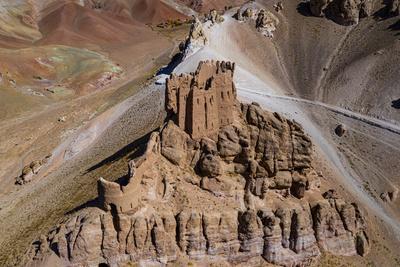 Aerial by drone of Gohargeen fort, Yakawlang province, Bamyan, Afghanistan