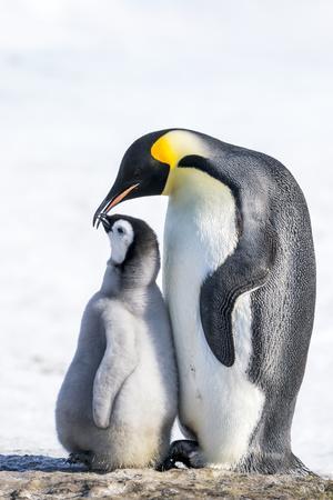 Snow Hill Island, Antarctica. Emperor penguin parent bonding with chick.
