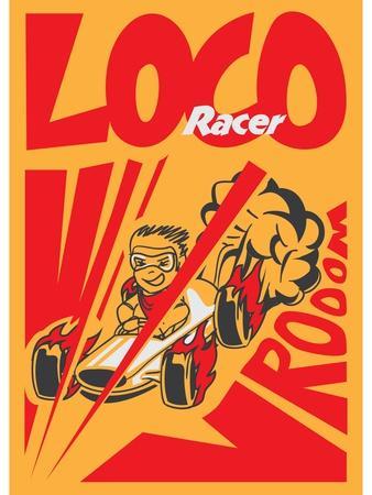 Retro Poster Cartoon Vintage Race Car Loco Racer