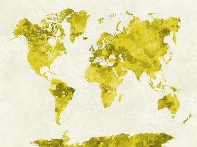 World Map in Watercolor Yellow