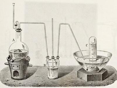 Old Schematic Illustration Of Laboratory Apparatus For Oxygen Production