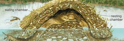 Beaver Lodge or House in Cross Section. (Castor Canadensis), Mammals