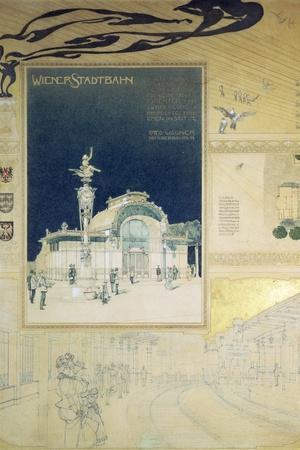 The Stadtbahn Pavilion of the Vienna Underground Railway, design showing the exterior and a view of the railway platform, c.189497 (coloured pencil), Wagner, Otto (18411918) Wien Museum Karlsplatz, Vienna, Austria The Bridgeman Art Library