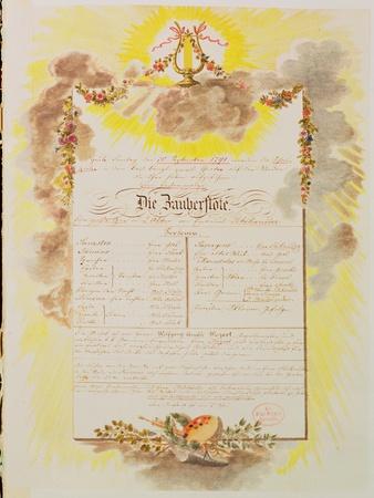 Play-Bill for the World Premier Performance in Vienna of 'The Magic Flute' Giclee Wall Art