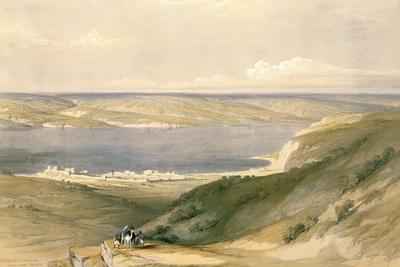 Sea of Galilee or Genezareth looking towards Bashan April st plate from Volume I of The Holy Land engraved by Louis Haghe pub litho Roberts David after Private Collection The Stapleton Collection The Bridgeman Art Library