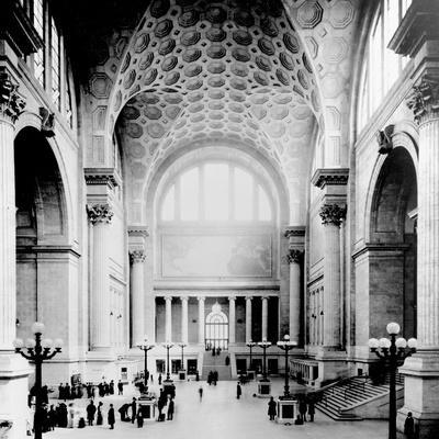 Pennsylvania Station, New York City, Main Waiting Room- Looking North, C.1910 (B/W Photo)
