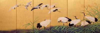 SixFold Screen Depicting Reeds and Cranes, Edo period, Japanese, 19th century (colour on gilded silk), Kiitsu, Suzuki (17961858) Detroit Institute of Arts, USA Founders Society Purchase The Bridgeman Art Library