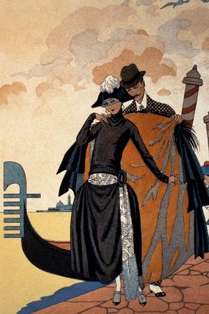 Her and Him, Fashion Illustration, 1921 (Pochoir Print)