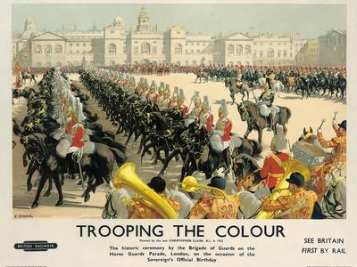 Trooping the Colour poster advertising British Railways c colour litho Clark Christopher Private Collection Photo Christies Images The Bridgeman Art Library