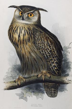 Eagle Owl, Lithographic Plate from "The Birds of Europe"