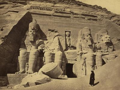 Entitled Abou Simbel The Abu Simbel temples are two massive rock temples in Abu Simbel in Nubia southern Egypt The twin temples were originally carved out of the mountainside during the reign of Pharaoh Ramesses II in the th century BCE Construction of the temple complex started in approximately BCE and lasted for about years until BCE Known as the Temple of Ramesses beloved by Amun it was one of six rock temples erected in Nubia during the long reign of Ramesses II Their purpose was to impress Egypts southern neighbors and also to reinforce the status of Egyptian religion in the region The complex was relocated in its entirety in on an artificial hill made from a domed structure high above the Aswan High Dam reservoir UNESCO World Heritage Site known as the Nubian Monuments Photographed by Francis Frith circa