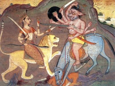 Devi is the Divine Mother of the Hindu culture and believed to be the power behind the work of creation preservation and destruction of the world Her name means goddess Devi is the consort wife of Shiva She has many names and forms such as he bloodthirsty Kali the gentle Parvati mother of the elephant god Ganesha or the warrior Durga Durga is often depicted with multiple arms riding a ferocious lion and carrying various weapons Her many hands represent eight quadrants or ten directions in Hinduism The lion represents power will and determination Durga riding the lion symbolizes her mastery over all these qualities Her triumph as Mahishasura Mardini Slayer of the buffalo Demon is a central episode of the scripture Devi Mahatmya Her victory is celebrated annually in the festivals of Navaratri and Durga Puja