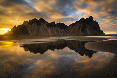 Landscape with Vestrahorn mountains and beach at sunset, Stokksnes, Iceland