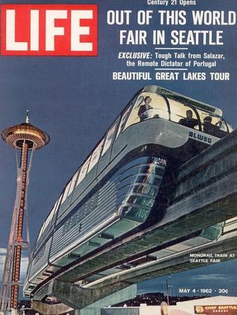 Monorail and Space Needle at World's Fair in Seattle, May 4, 1962