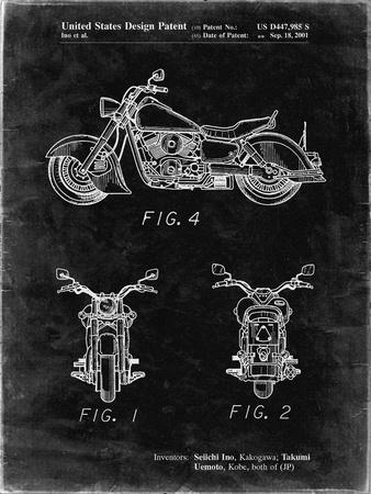 PP901-Black Grunge Kawasaki Motorcycle Patent Poster