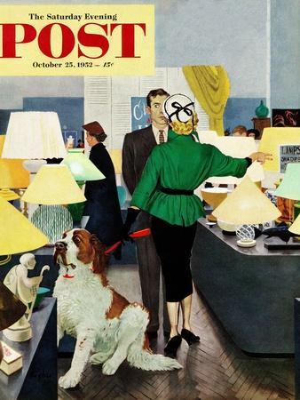 "St. Bernard in Lamp Shop" Saturday Evening Post Cover, October 25, 1952