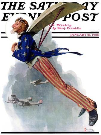 "Flying Uncle Sam" Saturday Evening Post Cover, January 21,1928