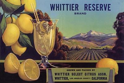 Whittier Reserve Brand - Whittier, California - Citrus Crate Label Art Print by Lantern Press. Find art you love and shop high-quality art prints, photographs, framed artworks and posters at Art.com. 100% satisfaction guaranteed.