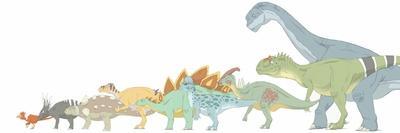 Pencil Drawing Illustrating Various Dinosaurs and their Comparative Sizes