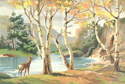 This art print is reproduced from a vintage postcard or other small original material. The original dot pattern may be visibly enlarged in the print, giving it a unique, vintage appearance.