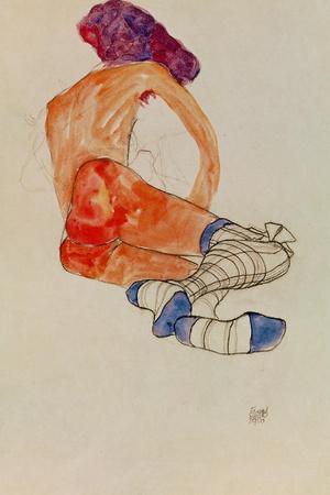 Seated Female Nude with Blue Garter, Back View, 1910