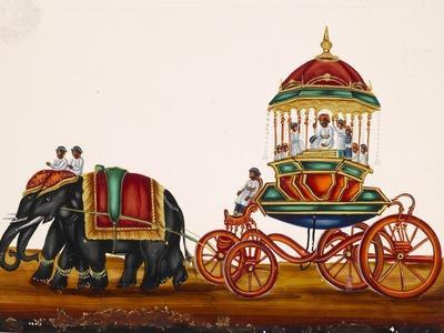 Elephants pulling a carriage belonging to a wealthy man from Thanjavur India paint on mica Indian School th century Royal Albert Memorial Museum Exeter Devon UK The Bridgeman Art Library