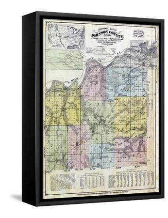1874, Johnson County Sectional Map, Kansas, United States