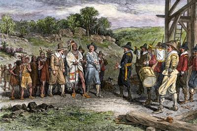 Wampanoag Leader Massasoit Visiting Colonists at Plymouth, 1620s