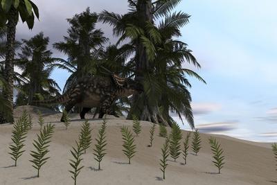 Brown Einiosaurus Grazing a Desert Environment Wall Art Print