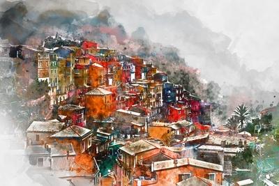 Digital Watercolor Painting of Manarola. Manarola is a Small Coastal Village in the Italian Region