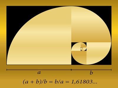 Golden Cut, Shown as a Spiral out of Quadrants, plus Formula. Vector Illustration.