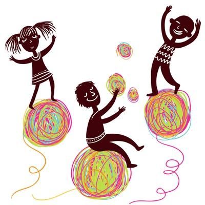 Happy Kids Playing with Colorful Balls. Cartoon Vector