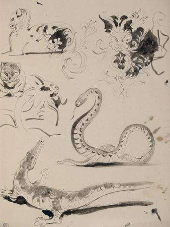 Sheet of Studies: Cat, Crocodile, Snake, Decorative