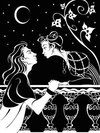 Romeo and Juliet - illustration of the balcony scene from the play by William Shakespeare