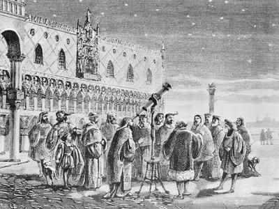 Illustration of Galileo Demonstrating Telescope