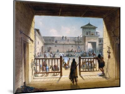 Interior of Fort Laramie with American Soldiers and Native Americans