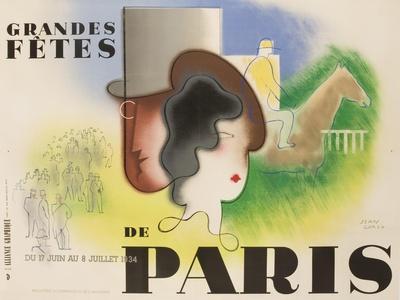 Elegant couple beckon tourists to the Grand Fete De Paris at the depths of the Depression Illustrated by Jean Carlu