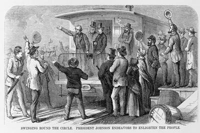 President Johnson speaks from the rear platform of a passenger car in the summer of