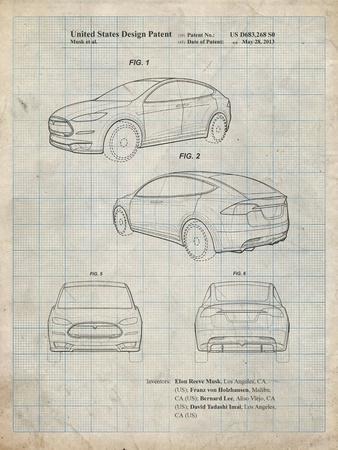 PP1093-Antique Grid Parchment Tesla Model S Poster