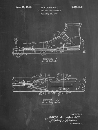 PP1124-Chalkboard Vintage Ski's Patent Poster